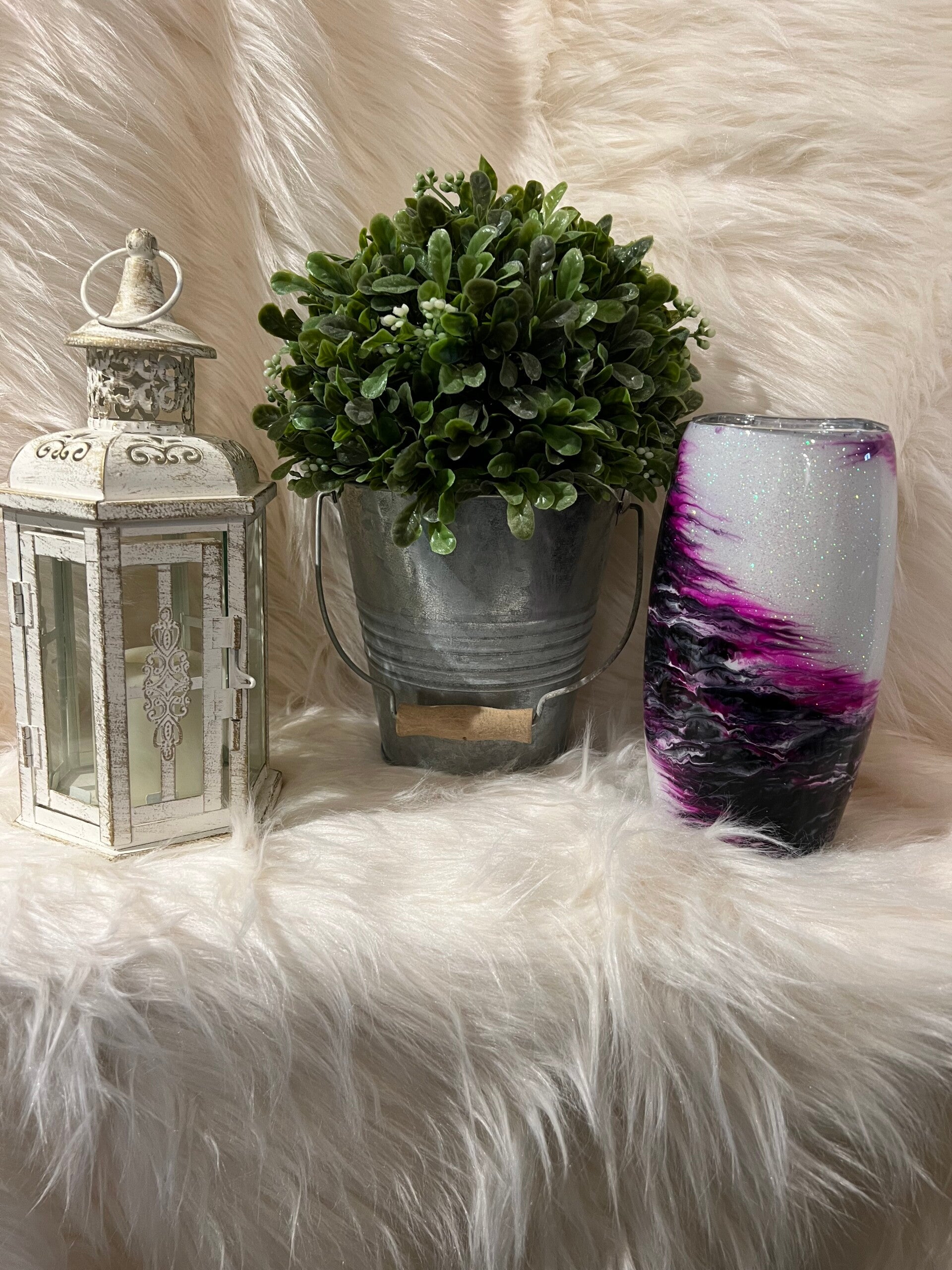 25oz Barrel - white glitter and hot pink and black twisted stinger
