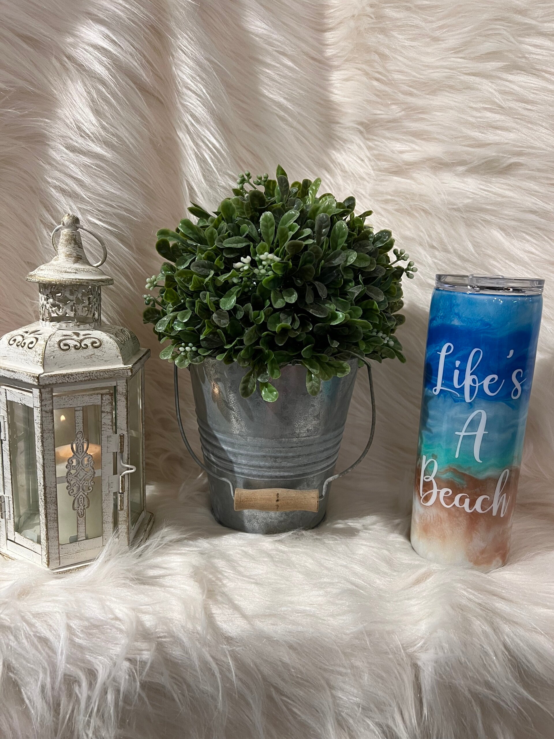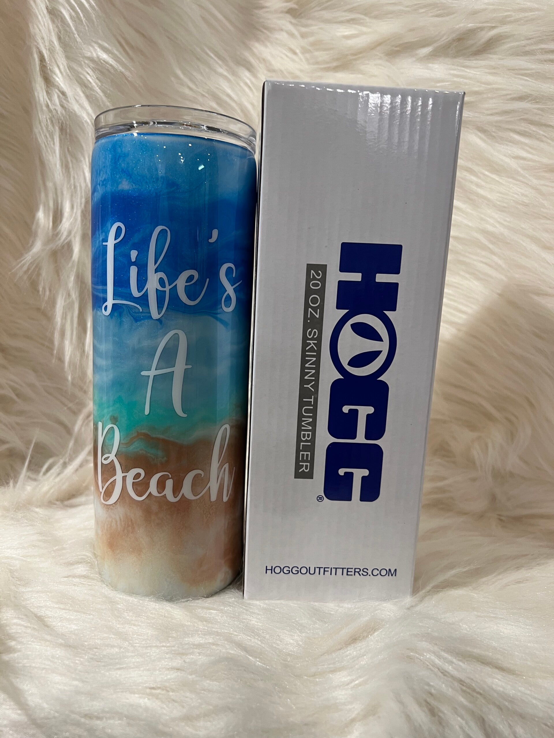 20oz Skinny Straight Life's a Beach alcohol ink swirl tumbler