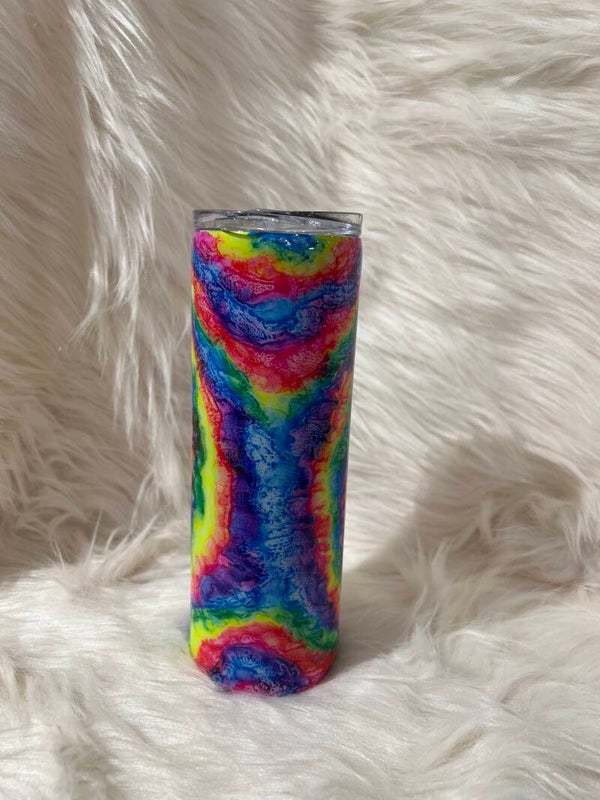 20oz Skinny Straight Neon Tie-dye Tumbler