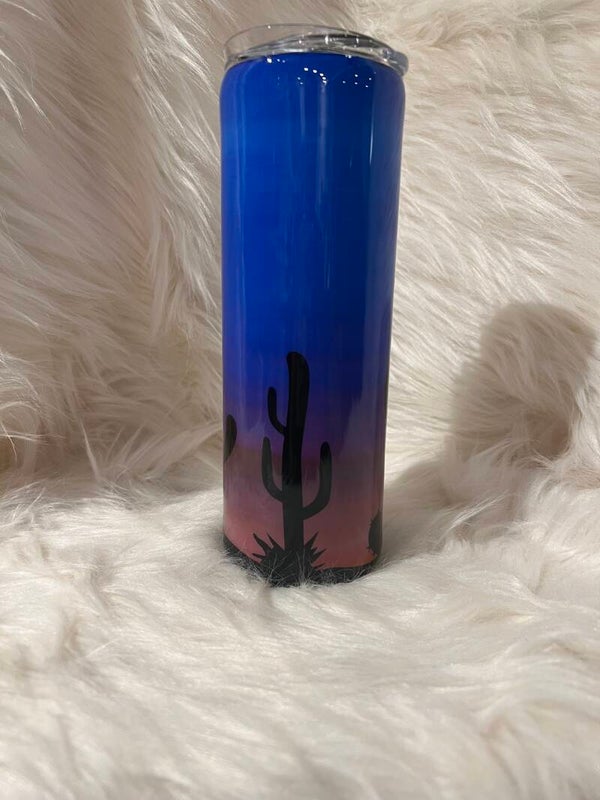 20oz straight with alcohol flood sunset and cactus decaling