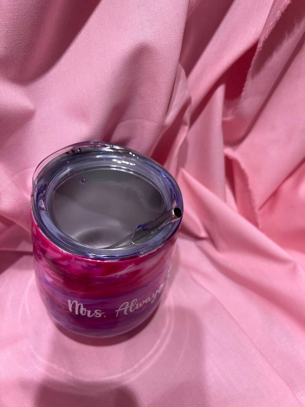 Mrs. Always Right wine tumbler with lid and straw. Hand-painted, finished in epoxy.