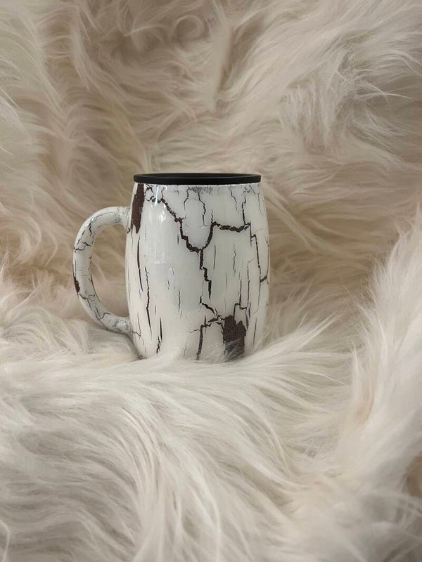 Handmade with full brown glitter and crackled to look like cracking and peeling paint with glitter peeking through.