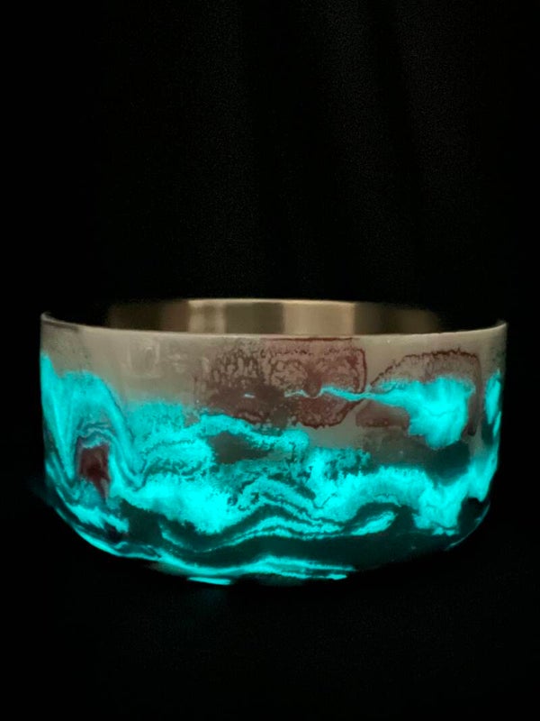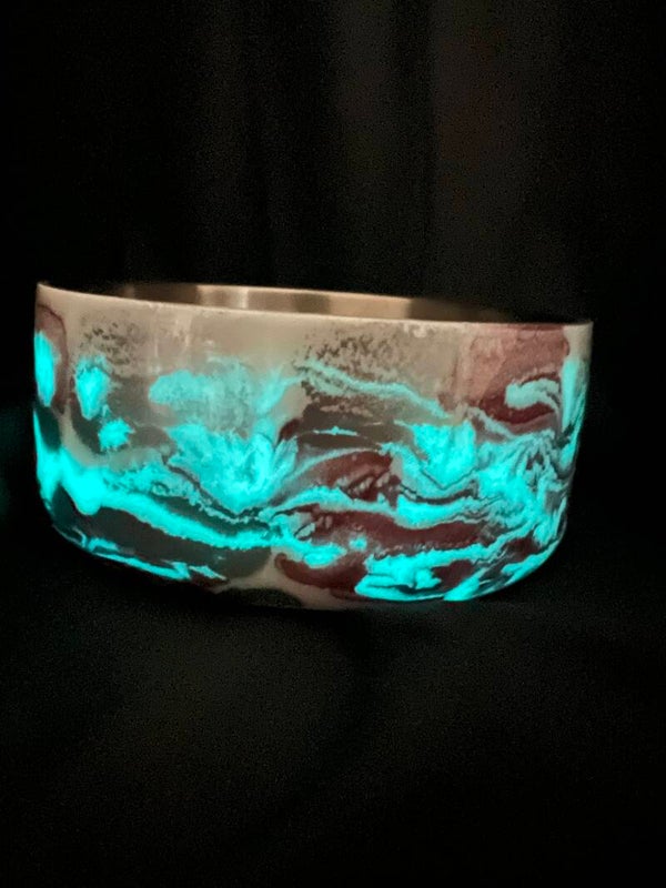 Beautiful rose gold and silver swirl 32oz dog bowl with a surprise! It GLOWS IN THE DARK